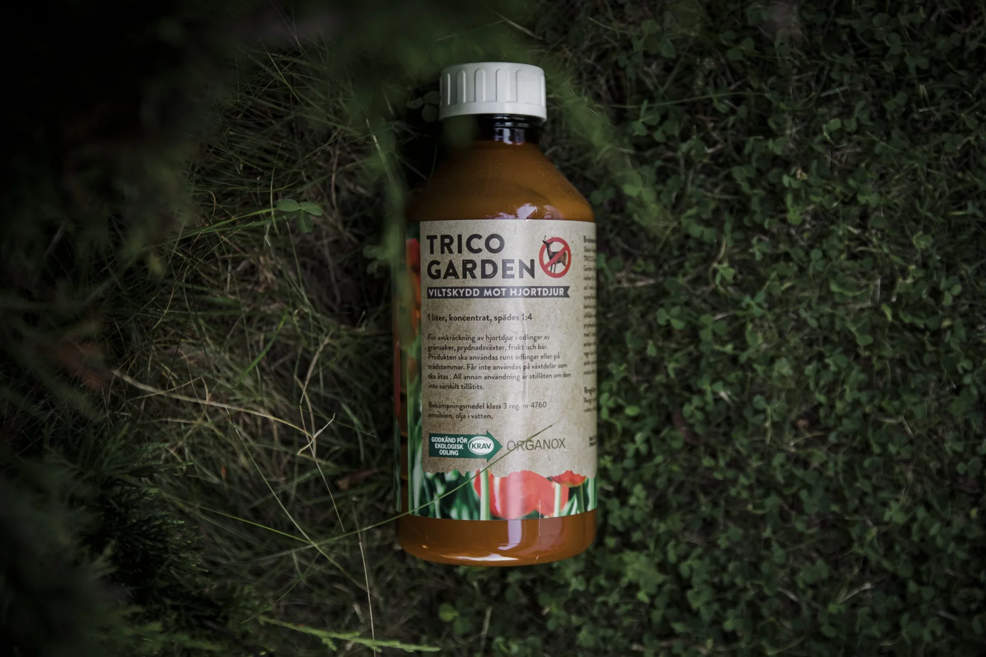 Vilda djur, som rådjur, hjort och älg, avskräcks därmed från planteringar. Den kan användas under hela växtsäsongen, i såväl professionell trädgårdsodling som i hemträdgårdar. Trico Garden är godkänd för användning i ekologisk och KRAV-godkänd produktion.