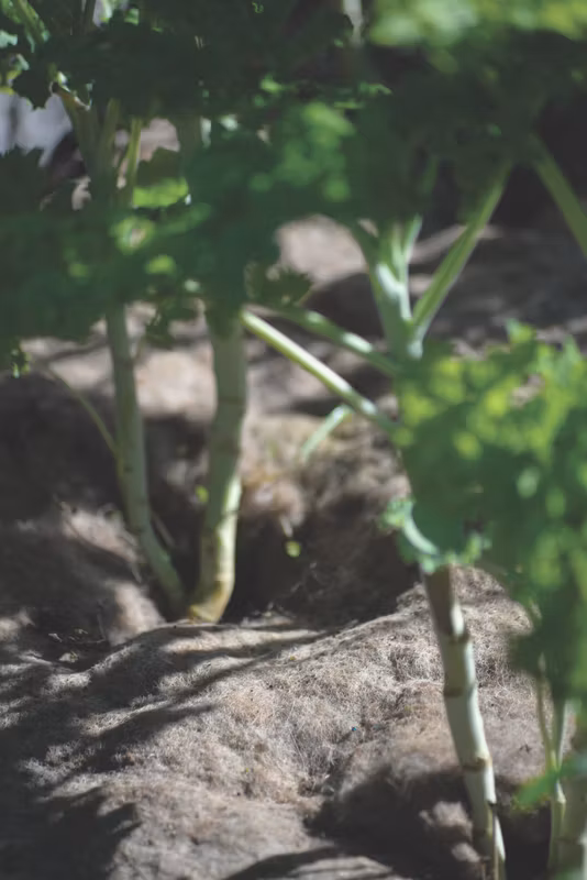 Håller jordens temperatur och fuktighet samt skyddar grödor från smuts.