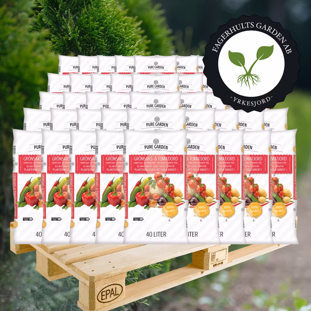 Jord på pall har en något längre leveranstid. Beräknad leveranstid är cirka 5-8 arbetsdagar. Vissa Postnummer kan dock ha upp till 10-12 arbetsdagar.