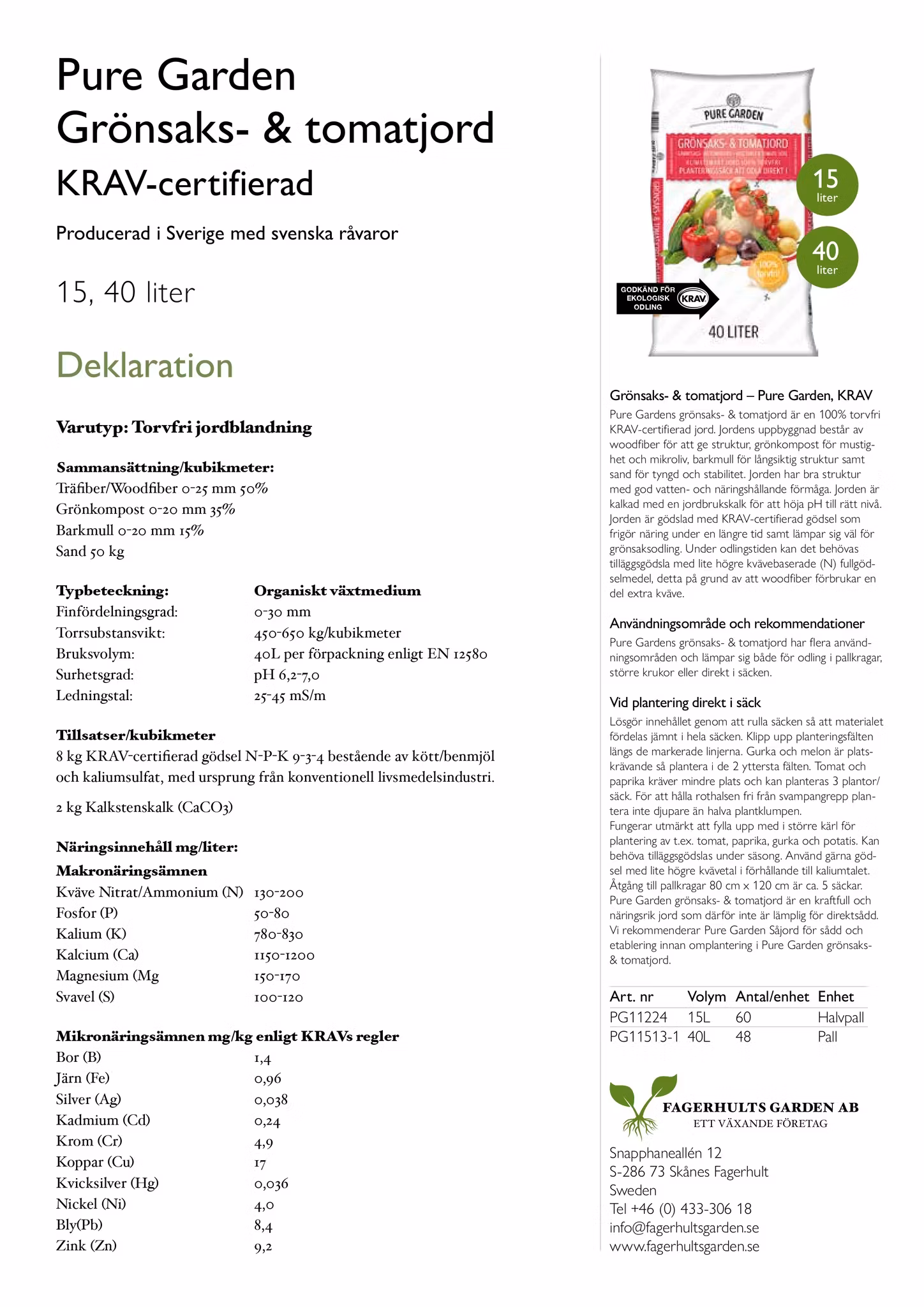 Med flera användningsområden. Att plantera direkt i säck (se hål på framsida) t.ex. tomat, gurka, melon. Att fylla upp med i pallkragar och sedan plantera/så direkt. 5 säckar/pallkrage (40 liter).
