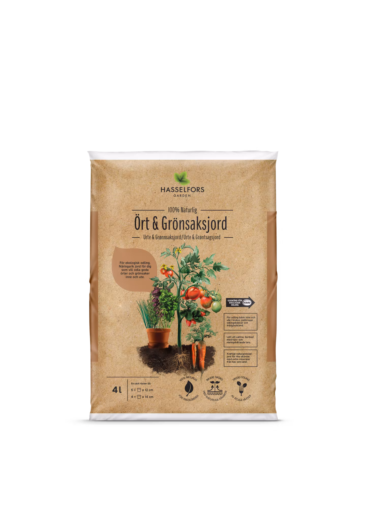 Ört & Grönsaksjord är en naturgödslad jord med extra tillsats av växtstimulerande ämnen och spårämnen för odling av bland annat sallat, kål, rotsaker, ärtor, bönor och kryddor. Den innehåller bara naturliga råvaror och är godkänd för ekologisk odling.